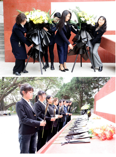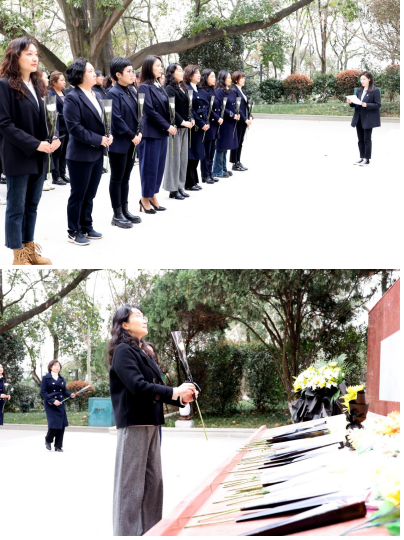 怀着对革命先烈的崇高敬意和深切缅怀,全体党员庄严碑,敬献鲜花,行三鞠躬,并默哀一分钟。