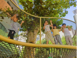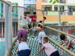 哇!擦干眼泪后宝贝们发现,原来幼儿园里这么好玩,每一个都想去打卡!阳光洒在攀爬网上,他们就像一只只勇敢的小蜘蛛,小手小脚用力蹬,爬到顶端咯咯笑!