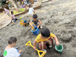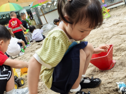 还有的宝贝拿着小小的铲子,在沙池里面挖呀挖呀挖,挖出了一个个令人欣喜的“宝藏”,脸上马上绽放出惊喜的微笑。