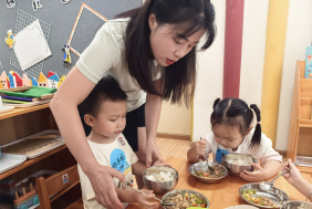 第一天,幼儿园门口挂满了“小雨滴”。有的宝贝抱着妈妈的脖子变成小树袋熊;有的嘟着小嘴,坐在小椅子上偷偷想家;还有的眼泪像断了线的珍珠,啪嗒啪嗒掉个不停。老师们蹲下身,用暖暖的拥抱、软软的故事、甜甜的歌声,轻轻擦掉宝贝们的眼泪,不一会儿,宝贝们就开始眨着好奇的大眼睛,悄悄打量这个新世界啦!