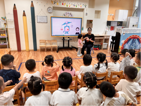 教师通过朗朗上口的护牙儿歌,配合刷牙动作示范,让孩子们在欢唱中记住刷牙方法,激发护齿兴趣。