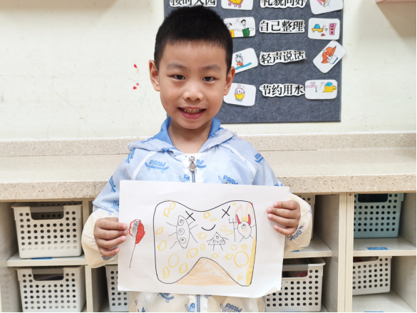 孩子们用手中的画笔,尽情表达他们对牙齿健康的理解与想象。