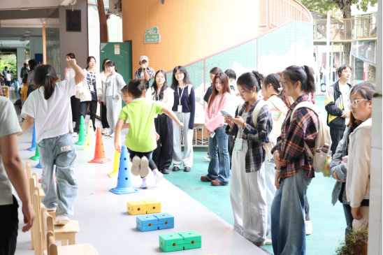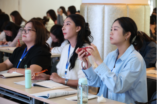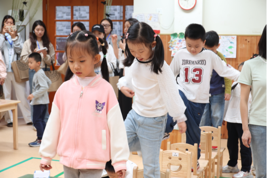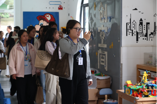 学员们驻足于自然生态的游戏场中,真切感受“鲜活灵动 生命之绿”园所文化浸润下的户外游戏区域和班级环境创设,体悟游戏化、生活化的课程样态如何激发幼儿的学习兴趣与创造力。在师训主任张碧玉的专业引领下,学员们观摩室内循环游戏,看孩子们攀爬、跳跃、奔跑,自主搭建和选择区域,在蓬勃的生命力与鲜活的游戏样态中感受循环游戏中的教育智慧。