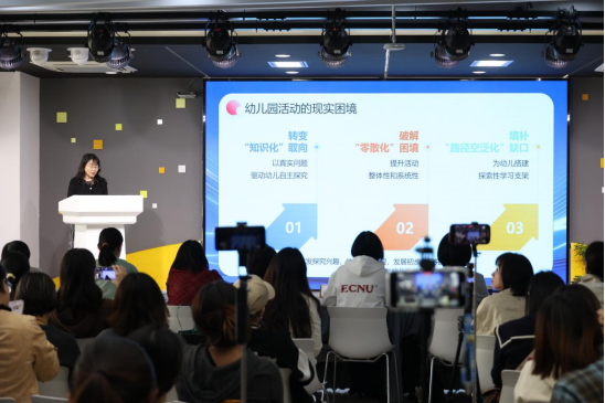 冯园长的分享逻辑严谨、案例鲜活,引发了现场观众的强烈共鸣与深入思考。与会专家与同行对我园基于园本文化的课程顶层设计和扎实的实践探索给予了高度评价。美国肯塔基大学哲学博士、上海师范大学学前教育学院讲师、硕士生导师李孜佳指出:“玩创”一词精准概括了游戏乐趣与深度学习之间的辩证关系,该游戏课程为破解幼儿科学素养启蒙难题提供了可借鉴的方案。