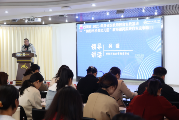 吴强书记充分肯定了绵阳市机关幼儿园作为省级教师教育实践基地的示范引领作用,希望各位学员以此次培训为新的起点,永葆学习热情,勇担育人使命,在推动区域学前教育均衡优质发展中展现更大作为,为加快建设教育强省、办好人民满意的学前教育作出更大贡献。