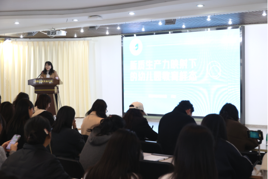 绵阳市机关幼儿园党支部书记、园长冯萍以《新质生产力映射下的幼儿园教育样态》为题进行了分享,从理论溯源与文化浸润入手,生动阐释了绵机幼如何将宏大的“新质生产力”与“绿”色理念深度融合,并最终落地为鲜活的育人实践,为在场的园长和管理者们提供了提升园所内涵发展的生动样板与宝贵参考。