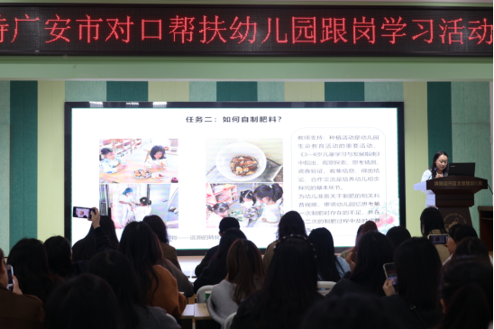 按照四川省教育厅、广安市人民政府《共建广安市公办学前教育改革发展实验区合作协议》精神,为落实《四川省教育厅关于开展公办幼儿园结对帮扶工作的通知》(川教函〔2019〕345号),根据《厅市共建广安市公办学前教育改革发展实验区幼儿园结对帮扶协议》《绵阳市机关幼儿园结对帮扶广安市邻水县第六幼儿园2025年帮扶工作计划》,11月6日—11月7日,绵阳市机关幼儿园接待了广安市邻水县第六幼教集团及所在区域50余位园长和管理者到园跟岗学习,以发挥省级示范幼儿园的辐射引领作用,进一步带动全省各区域学前教育优质均衡发展。