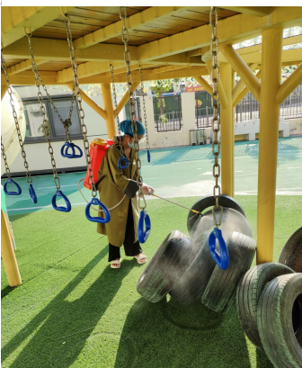 为守护幼儿平安健康,大家分头行动,对教室、公共区域、种植区等的设施设备,开展全面清洁与消毒,力求为孩子们提供安全舒适的成长环境。
