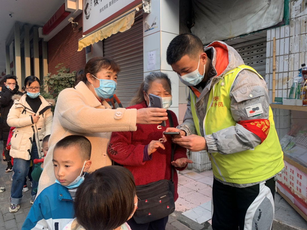 活动当天,志愿服务现场一片热火朝天。党员、团员志愿者们细致耐心地为幼儿家长讲解防疫要点、查验健康码,维护入园离园秩序。
