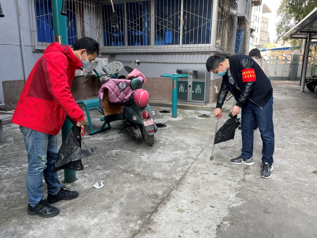 扶起歪倒的共享单车、为扶手清洁消毒……